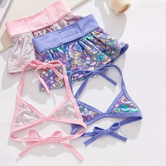 犬用ビキニ水着|小型犬用バススーツ|魚鱗柄ペットコスチューム